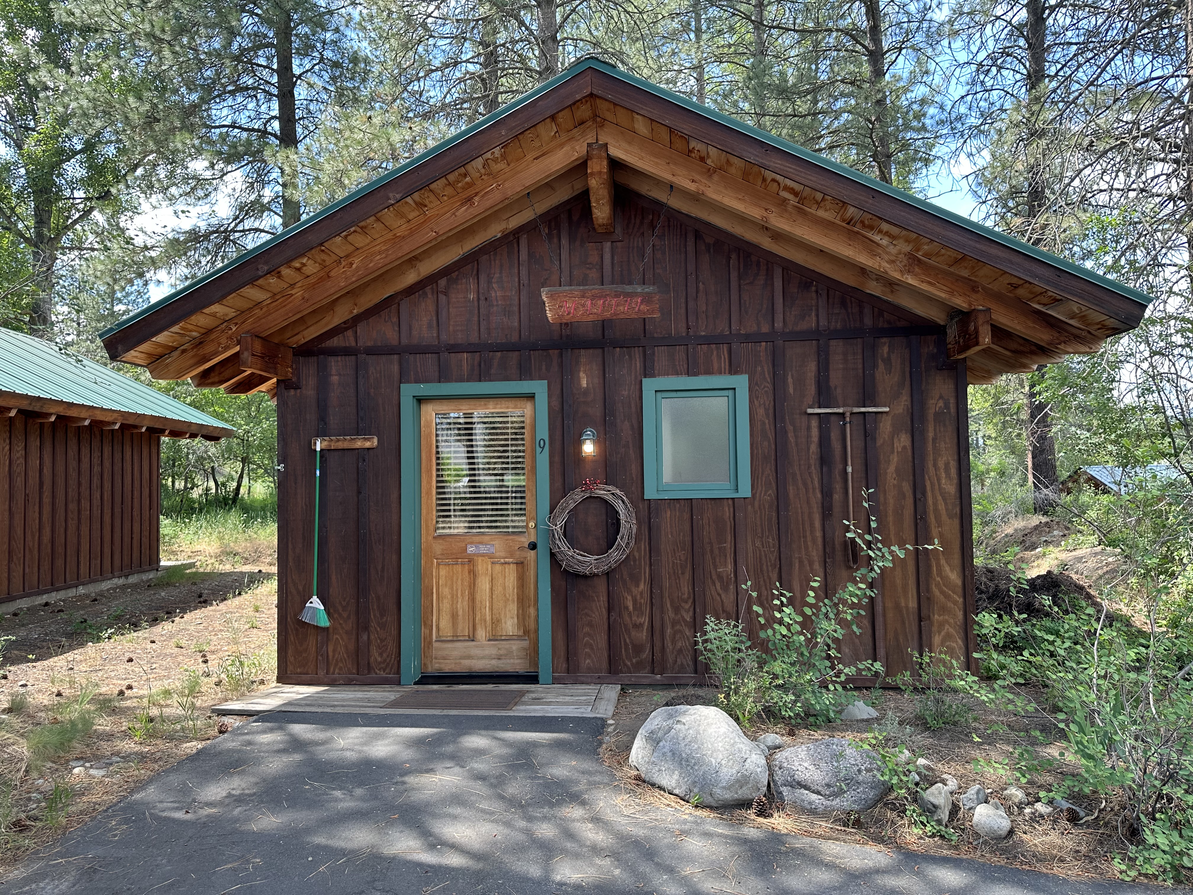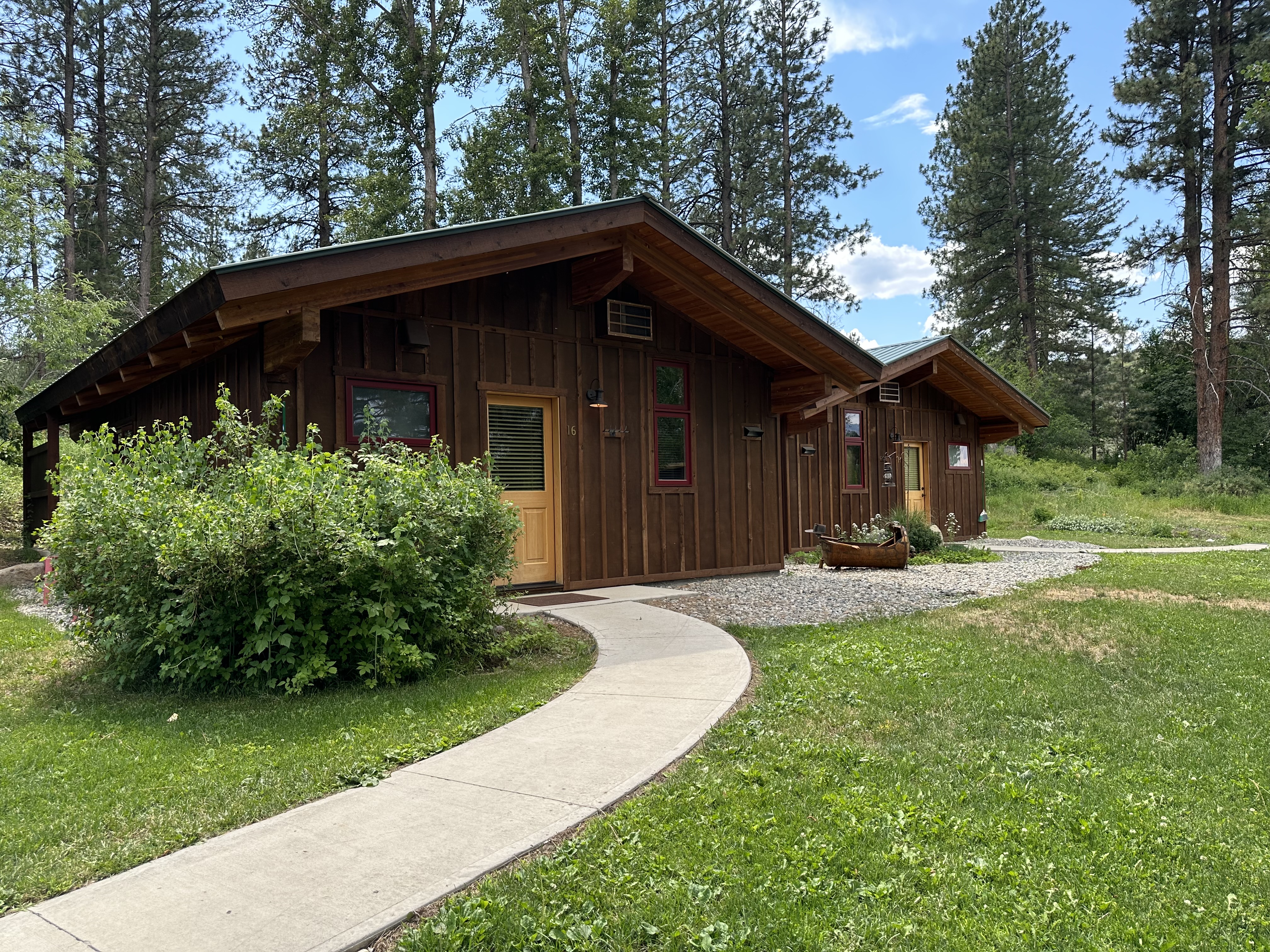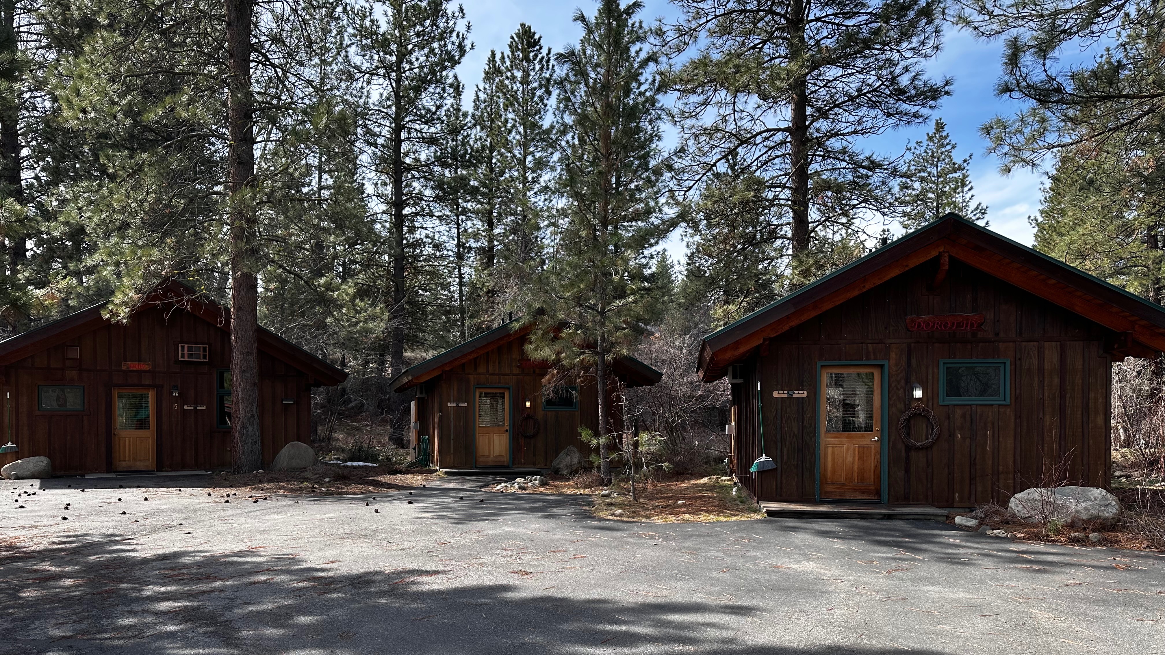 Just above the Chewuch Inn, seven craftsman style cabins sit in a pine grove, a seasonal creek runs near by. Two more cabins sit down below them on a private stretch of lawn with views of our small Orchard. Enjoy the privacy of your own cabin, BBQ (seasonal), & relax on the back deck while watching deer and birds in this natural setting.