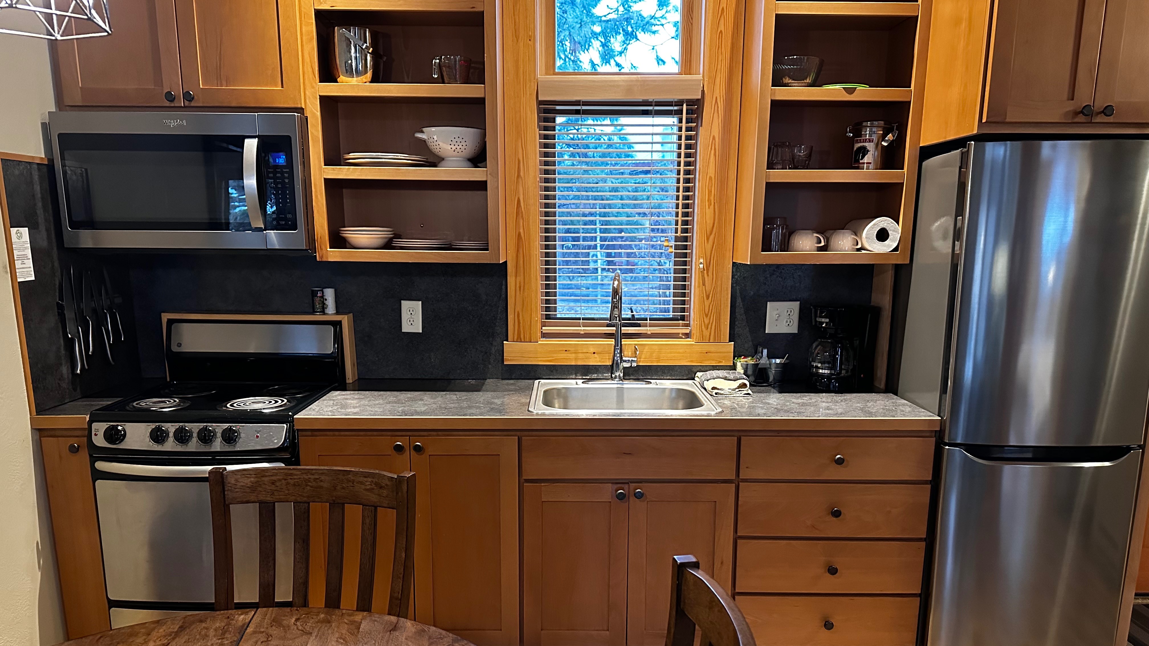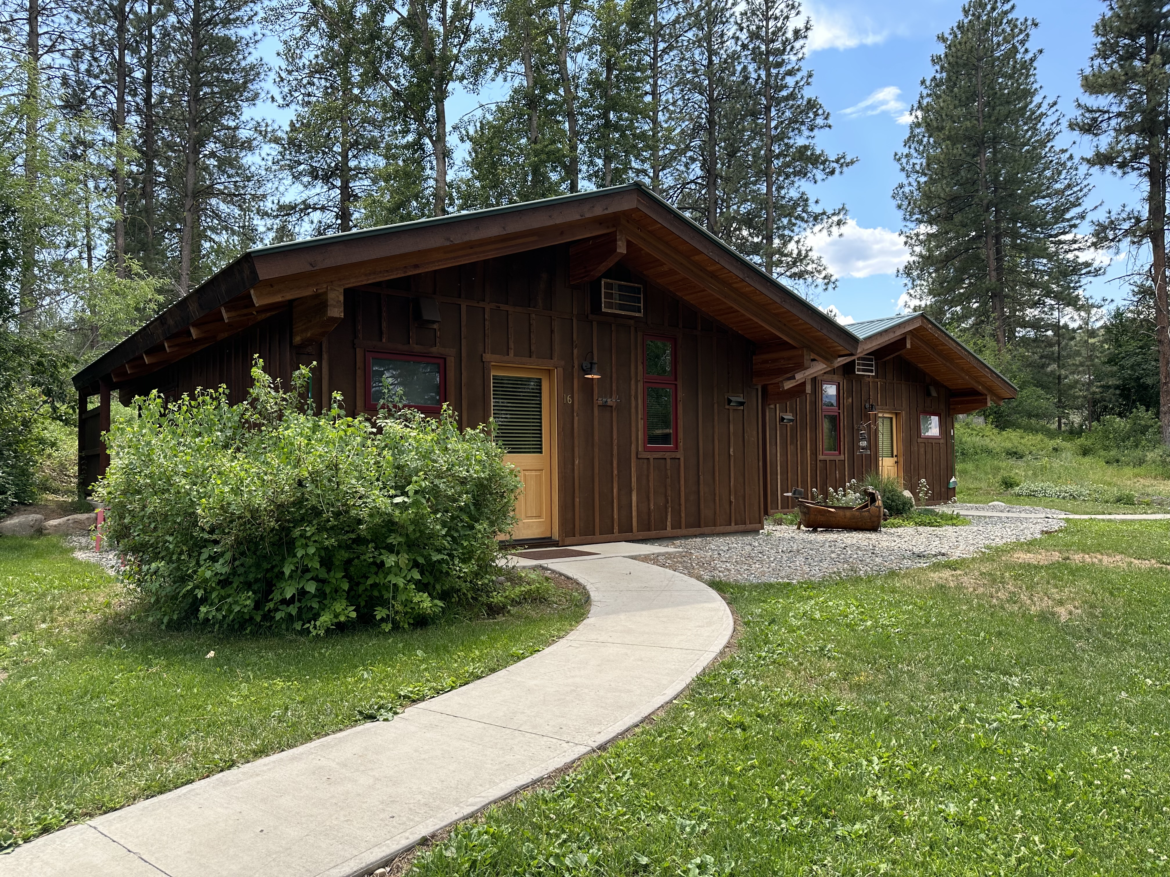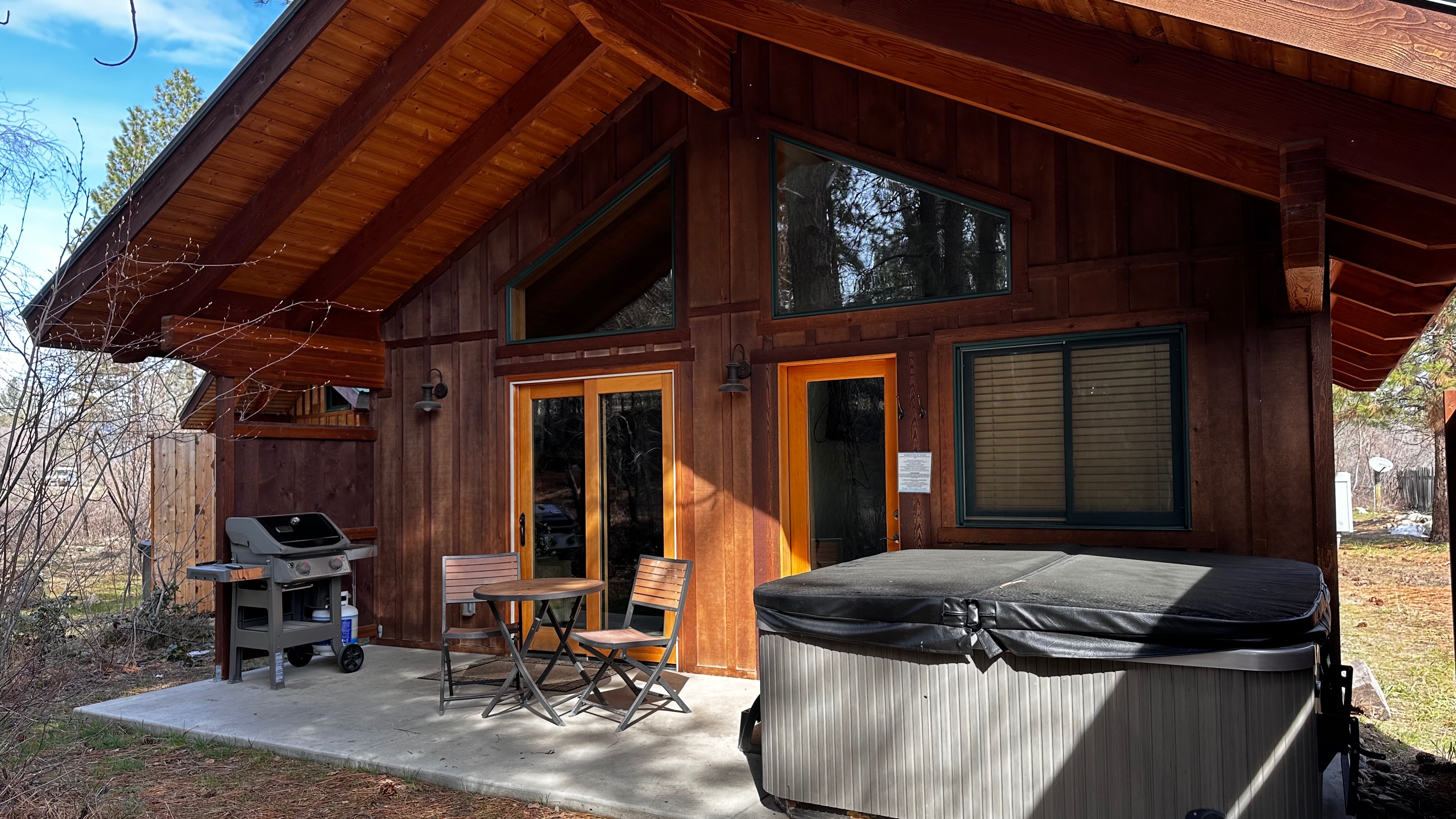 Just above the Chewuch Inn, seven craftsman style cabins sit in a pine grove, a seasonal creek runs near by. Two more cabins sit down below them on a private stretch of lawn with views of our small Orchard. Enjoy the privacy of your own cabin, BBQ (seasonal), & relax on the back deck while watching deer and birds in this natural setting.